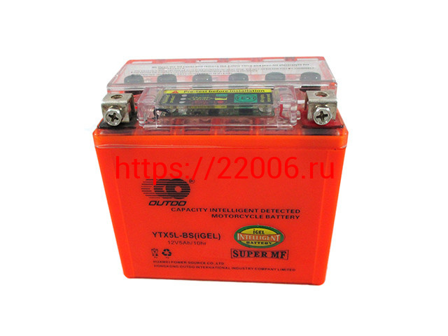 - Аккумулятор OUTDO I-GEL YTX5L-BS (12v/ 5hr) +тестер (114*70*106) 10 в Ирбите недорого