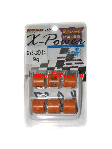 - Ролики вариатора (комплект 6 штук) 18*14 9 грамм 152QMI, 157QMJ KOSO в Ирбите недорого
