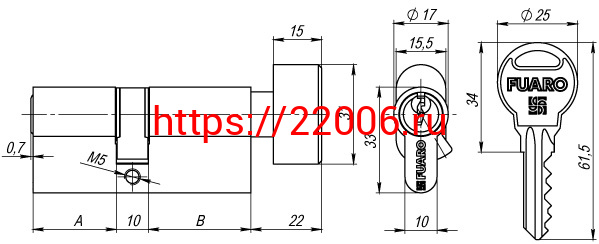 - Цилиндровый механизм Fuaro (Фуаро) с вертушкой R302/70 mm (30+10+30) PB латунь 5 кл. в Ирбите недорого