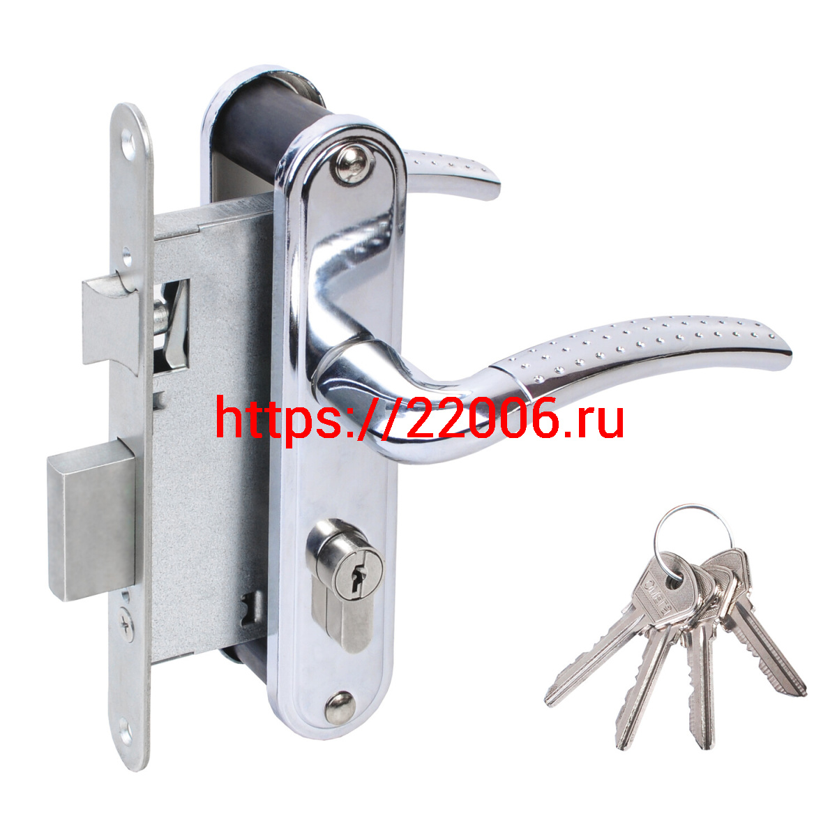 - Замок Omega (Омега) врезной цилиндровый с защёлкой в комплекте с ручкой ЗВ4-55.27 (хром), 4 кл. в Ирбите недорого