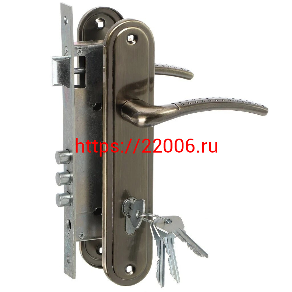 - Замок Omega (Омега) врезной цилиндровый с защёлкой в комплекте с ручкой ЗВ4-85.27 (ант.бронза), 4 кл. в Ирбите недорого