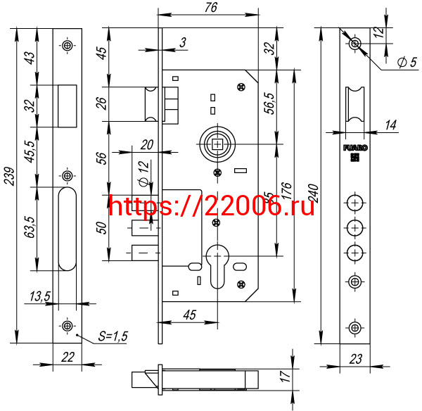 - Корпус Fuaro (Фуаро) врезного замка с защёлкой DD900/C-45.85.3MR (900 3MR W/B) PB латунь в Ирбите недорого