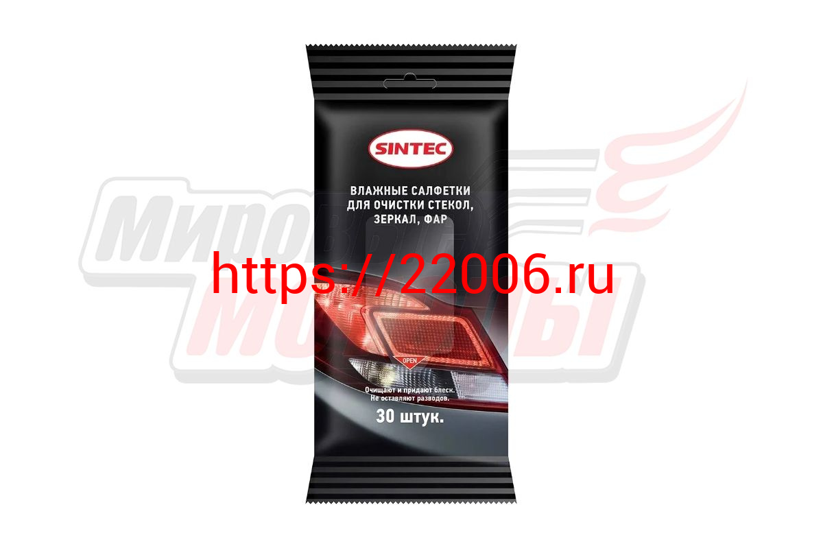 - Салфетки влажные "SINTEC" (30шт) для стекол,зеркал,фар в Ирбите недорого