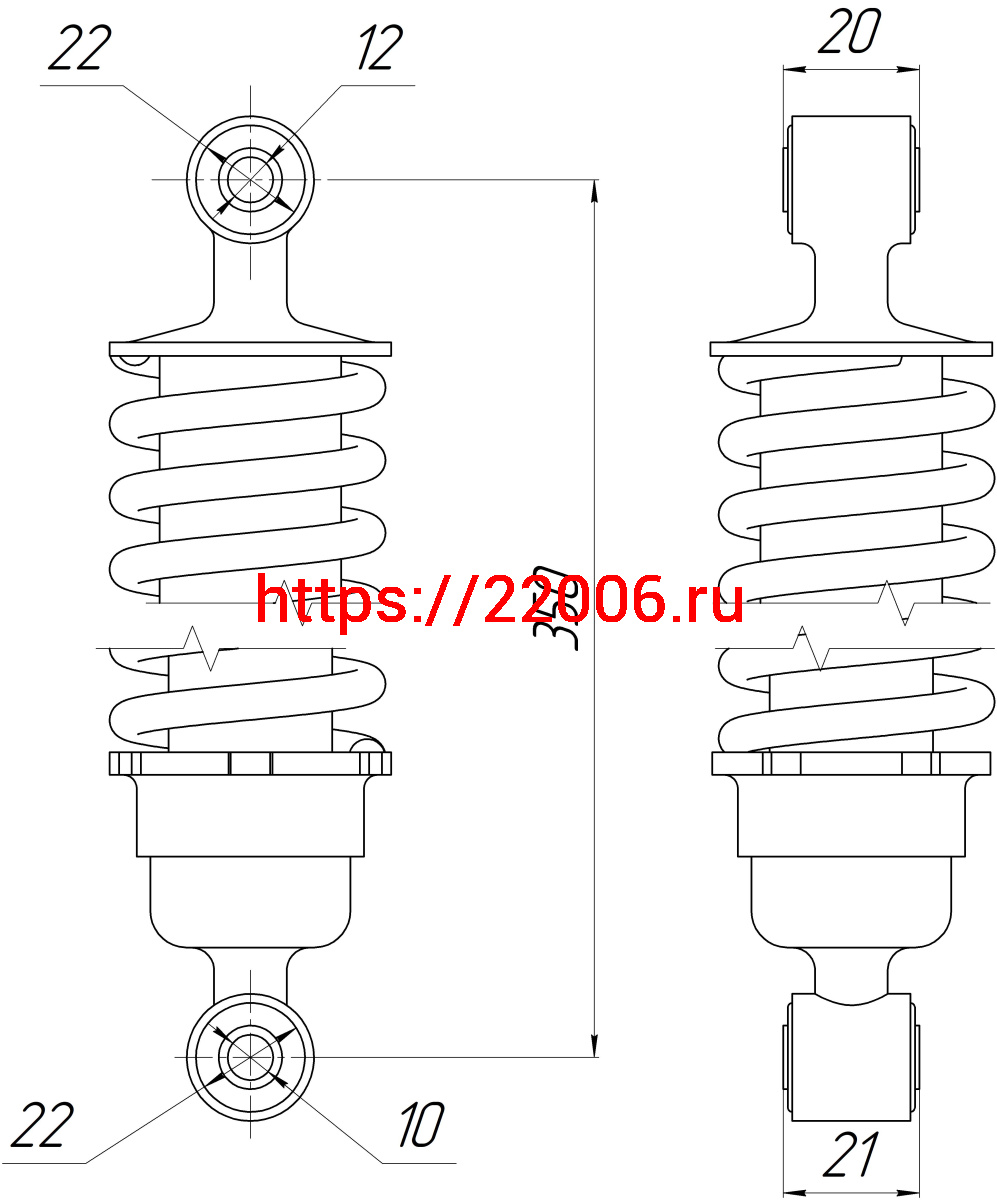 - Амортизатор Alpha зад. хром (L-350,D1-22,d1-12, Н1-20, D2-22,d2-10, Н2-21) ДОРОГОЙ (длинный стакан) в Ирбите недорого