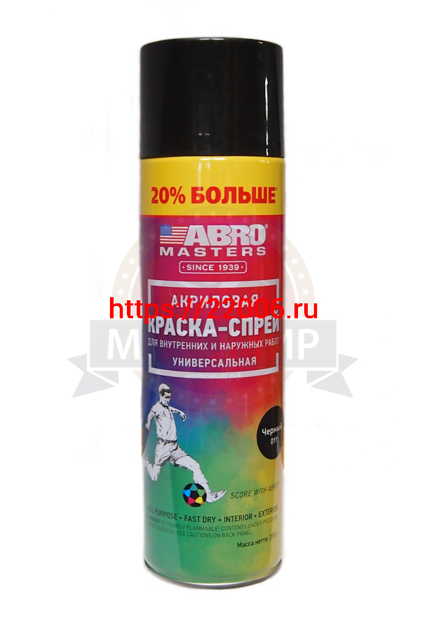 - Краска спрей ABRO masters +20%, универсальная ЧЕРНАЯ глянцевая аэрозоль, 310 мл. (SP-011-L-AM-RE) в Ирбите недорого