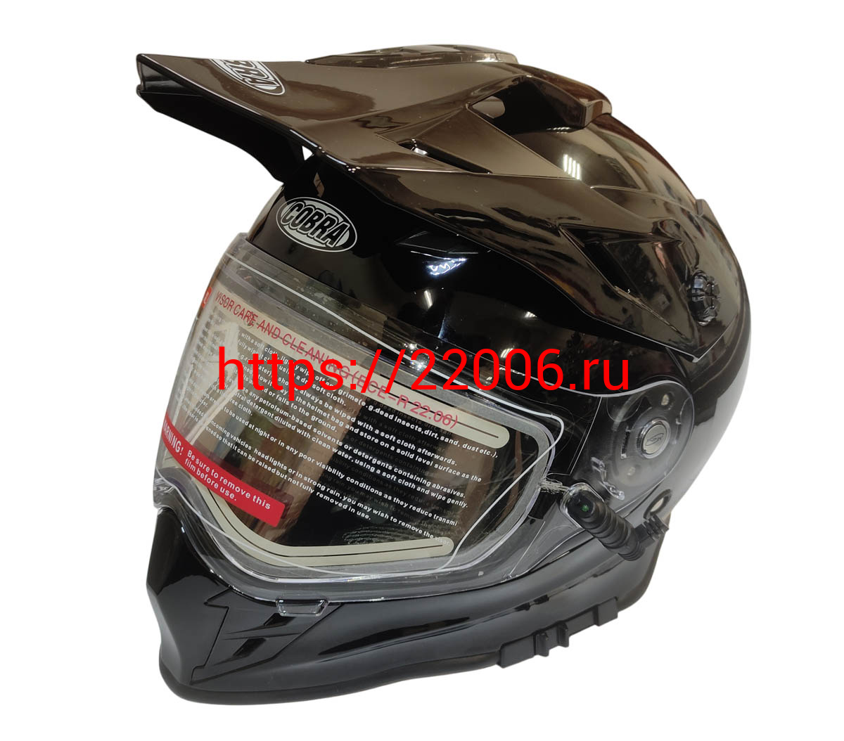 - Шлем кроссовый со стеклом (туринг) СНЕГОХОДНЫЙ COBRA EC H331, черный, с ПОДОГРЕВОМ ВИЗОРА, размер M в Ирбите недорого