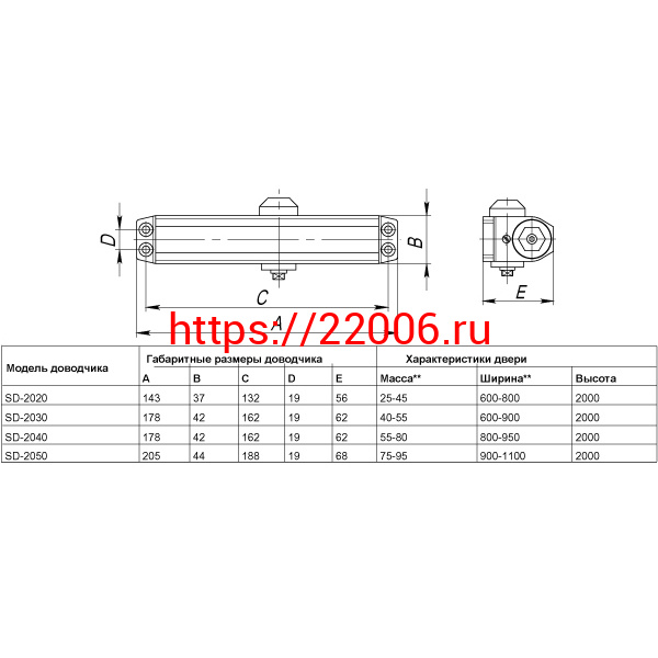 - Доводчик Punto (Пунто) дверной SDC2050 (SD-2050) AL 75-95 кг (алюминий) в Ирбите недорого
