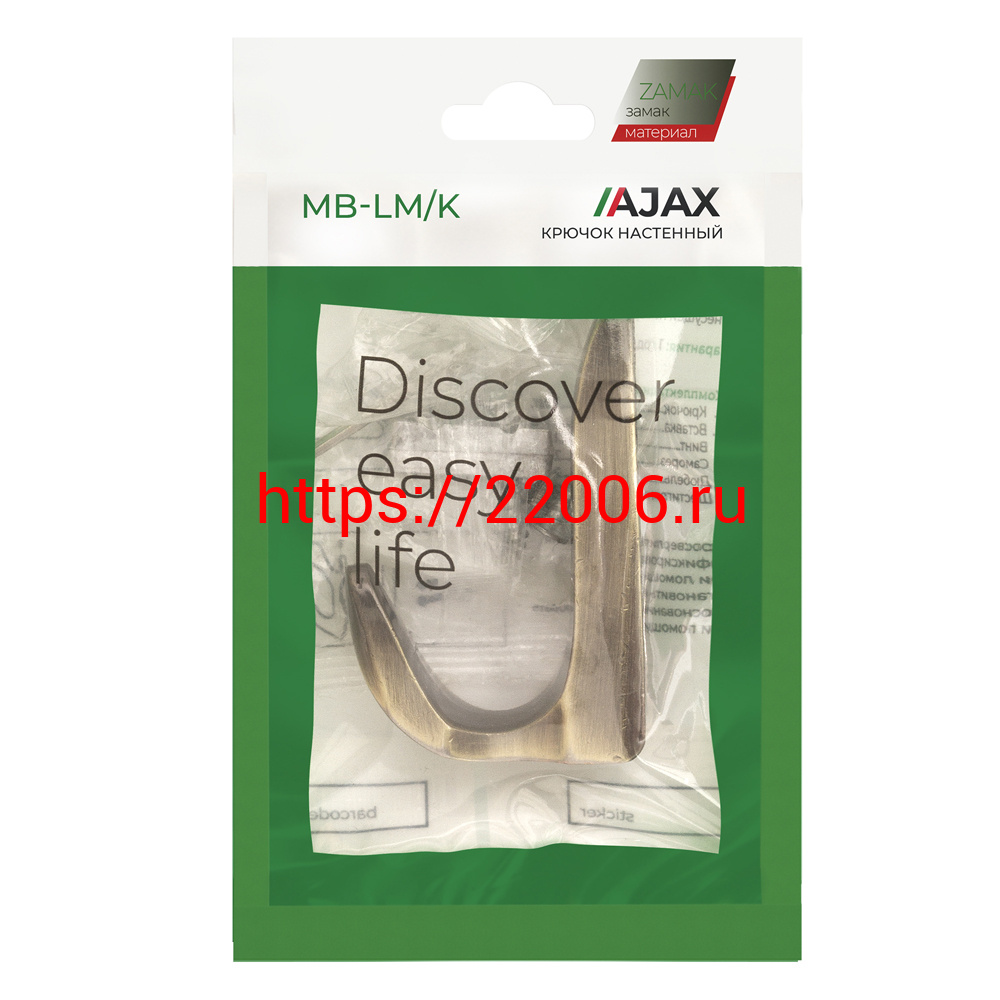 - Крючок Ajax (Аякс) настенный MB-LM/K-002 AB бронза в Ирбите недорого