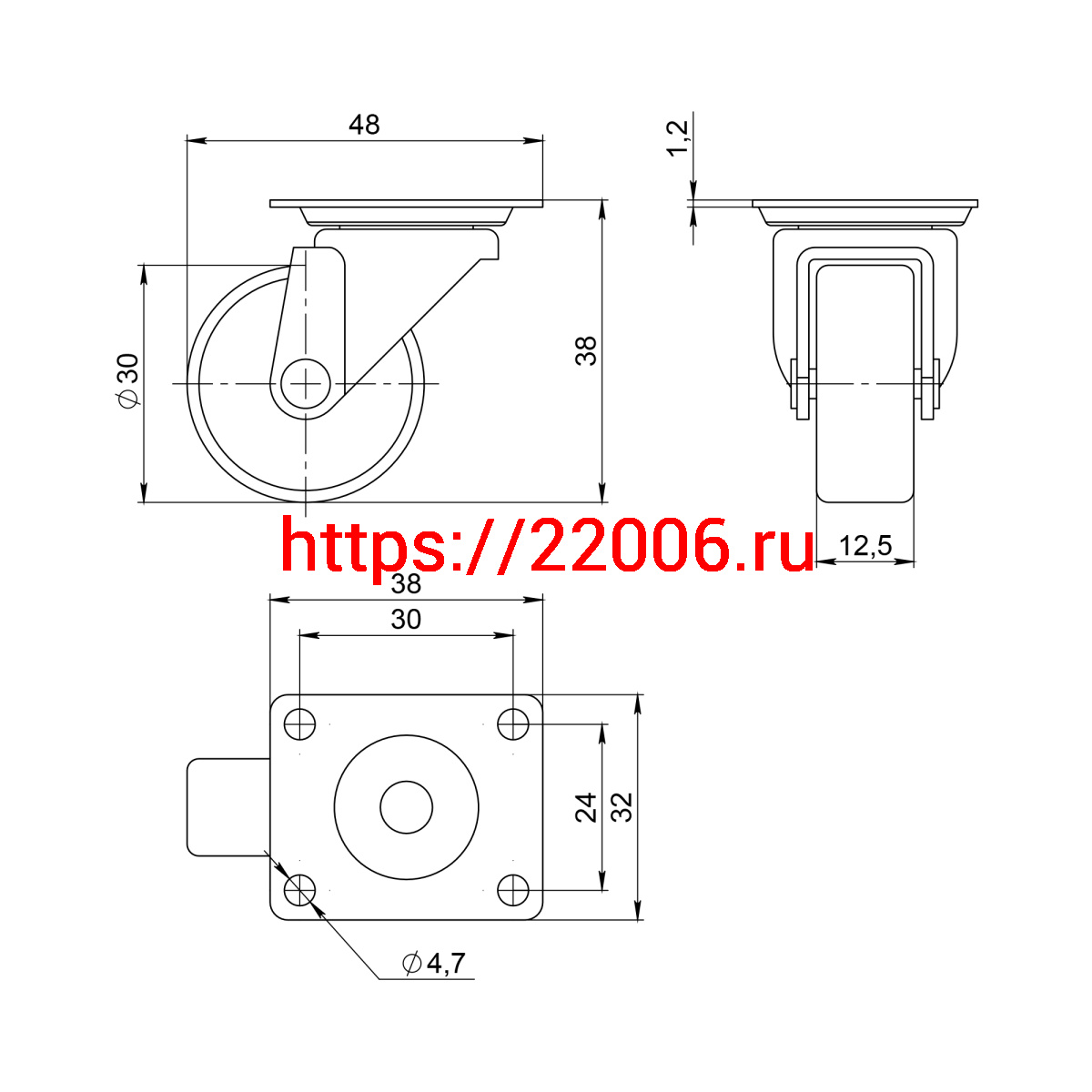 - Опора колесная Ajax (Аякс) с площадкой WL/B-30P/15kg пластик в Ирбите недорого