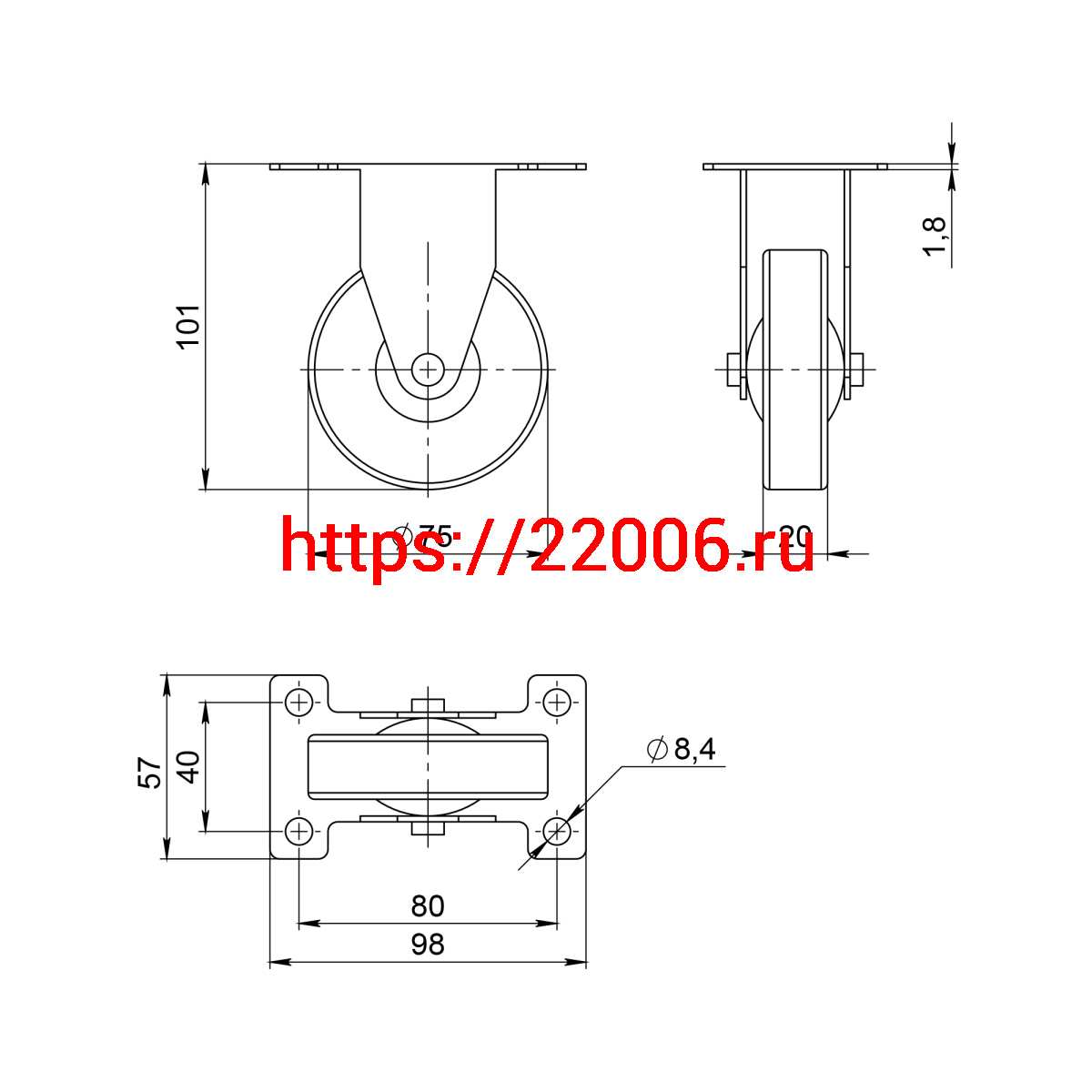 - Опора Ajax (Аякс) колесная прямоходная с площадкой WL/BN-75R/100 kg резина в Ирбите недорого