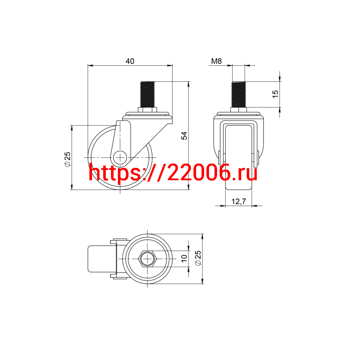 - Опора Ajax (Аякс) колесная WL/P-25R/20 kg резина, с винтом М8 в Ирбите недорого