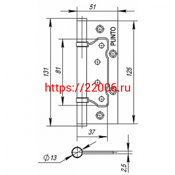 - Петля Punto (Пунто) универсальная без врезки IN5200W GR (200-2B 125x2,5) графит в Ирбите недорого