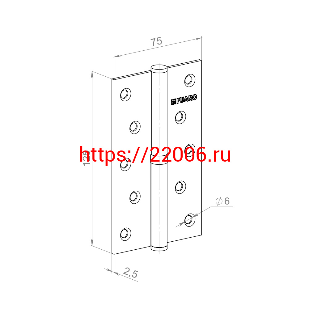 - Петля Fuaro (Фуаро) съемная IN5430SR CP правая (413-5 125x75x2,5) хром в Ирбите недорого