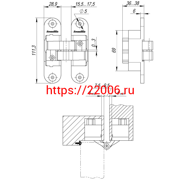 - Петля Armadillo (Армадилло) скрытой установки U3D6200L CP левая (Architect 3D-ACH 60) хром 60 кг в Ирбите недорого
