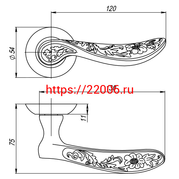 - Ручка Punto (Пунто) раздельная R.TL54.FLOR (FLOR TL) CF-17 кофе в Ирбите недорого