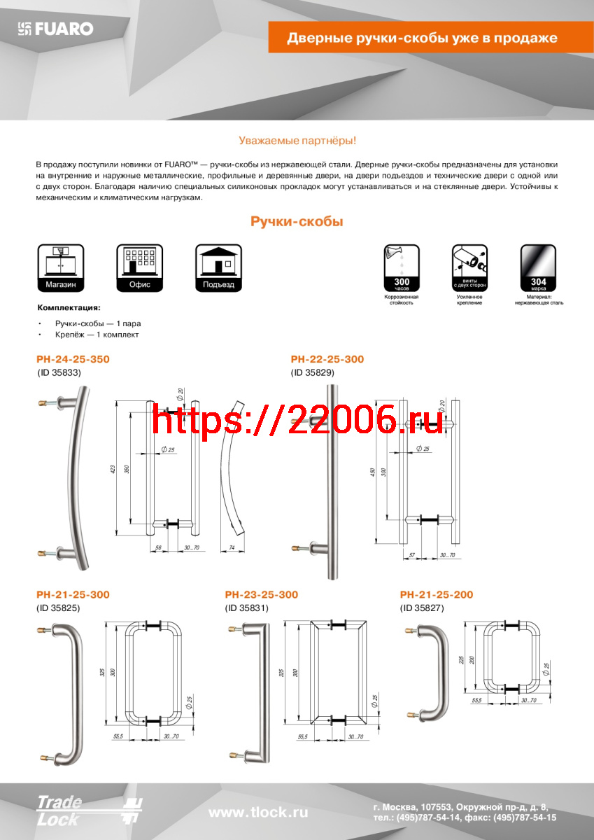 - Ручка-скоба Fuaro (Фуаро) PULL.PH25/300.21 INOX 304 (PH-21-25/300-INOX) в Ирбите недорого