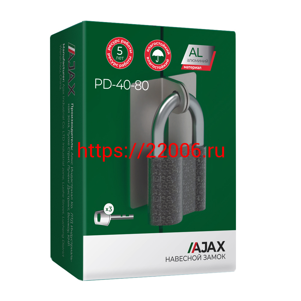 - Замок Ajax (Аякс) навесной PD-4080 (PD-40-80) 3 fin key /коробка в Ирбите недорого