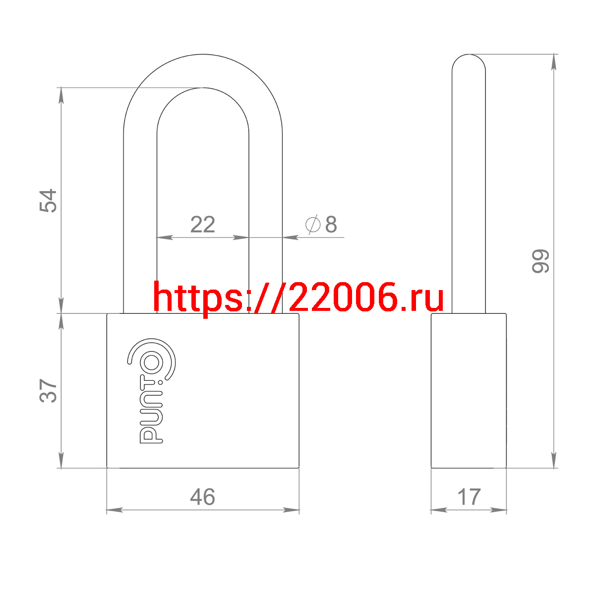 - Замок Punto (Пунто) навесной PK-1550L 3 key диск.ключ длиная дужка в Ирбите недорого