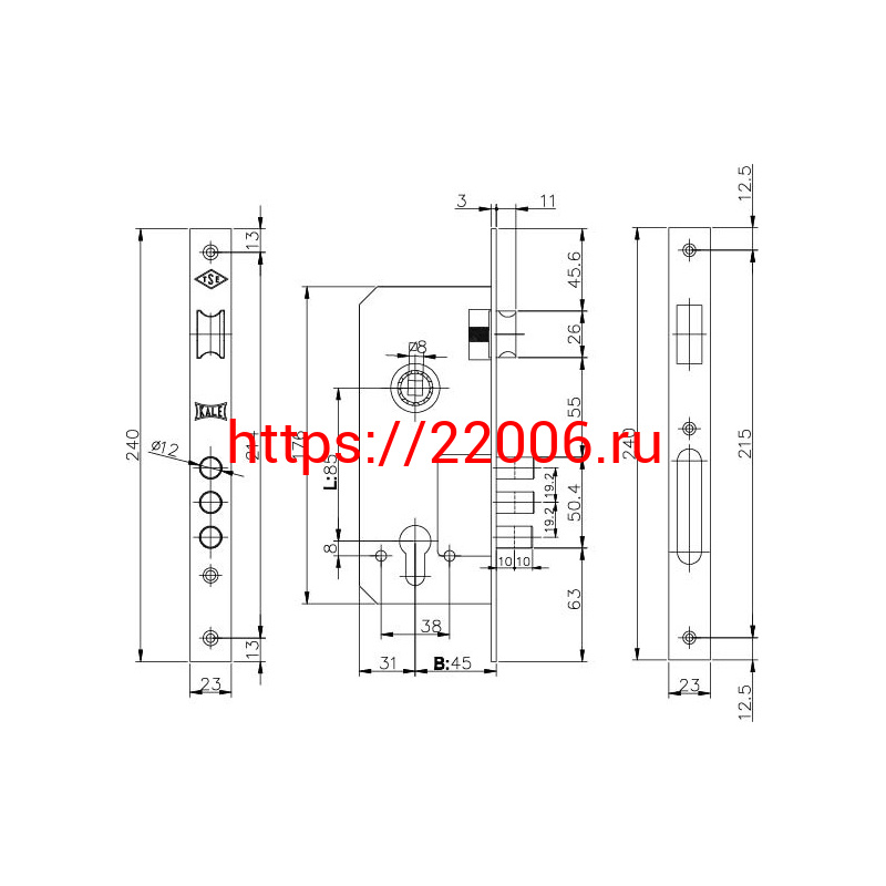 - Корпус Kale kilit (Кале килит) врезного замка с защёлкой 152/3MR (45 mm) w/b (никель) в Ирбите недорого