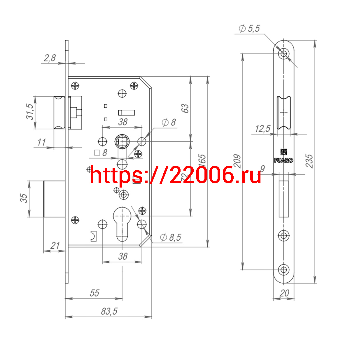 - Замок Fuaro (Фуаро) врезной DD.INOX/C-55.72 в Ирбите недорого