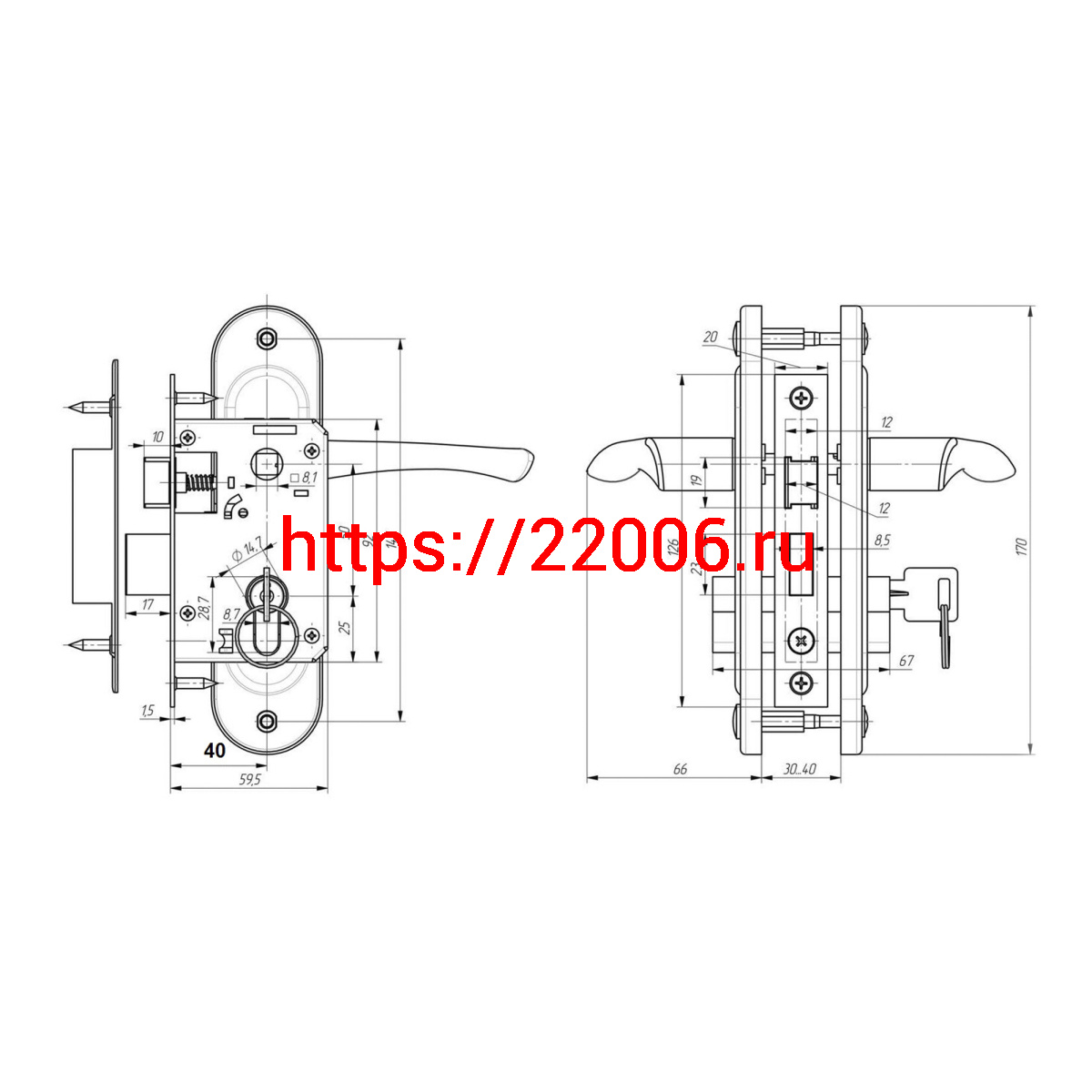 - Врезные электромеханические замки
