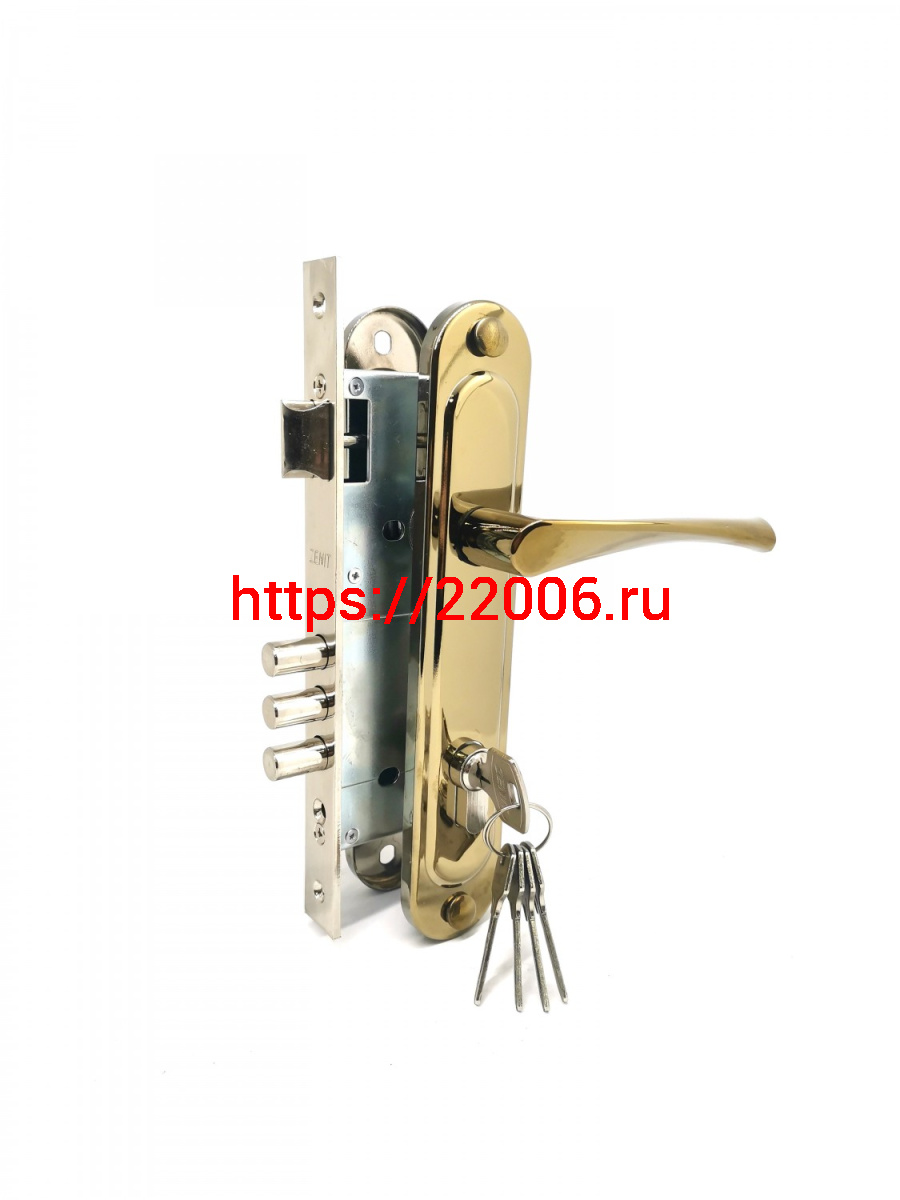 - Замок Zenit (Зенит) врезной цилиндровый с защёлкой в комплекте с ручкой ЗВ4-85.3 (золото лак), 5 кл. в Ирбите недорого