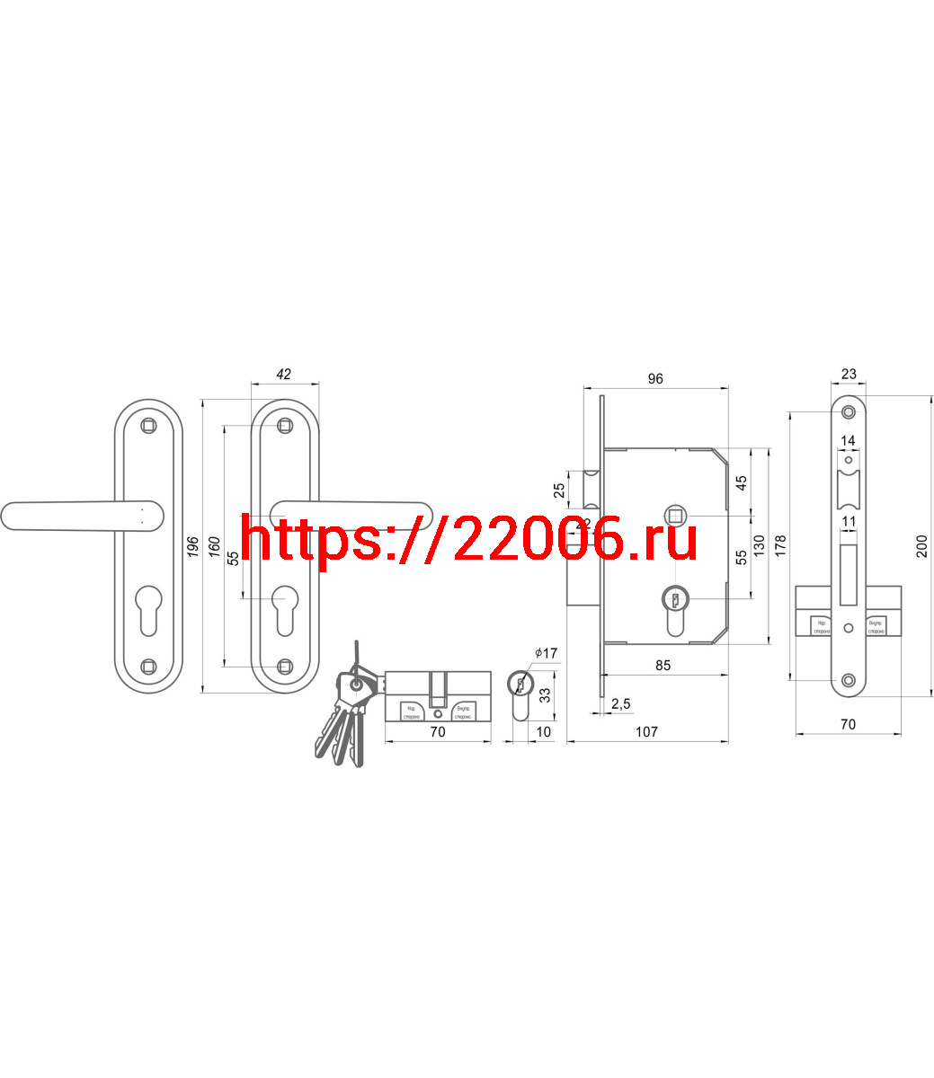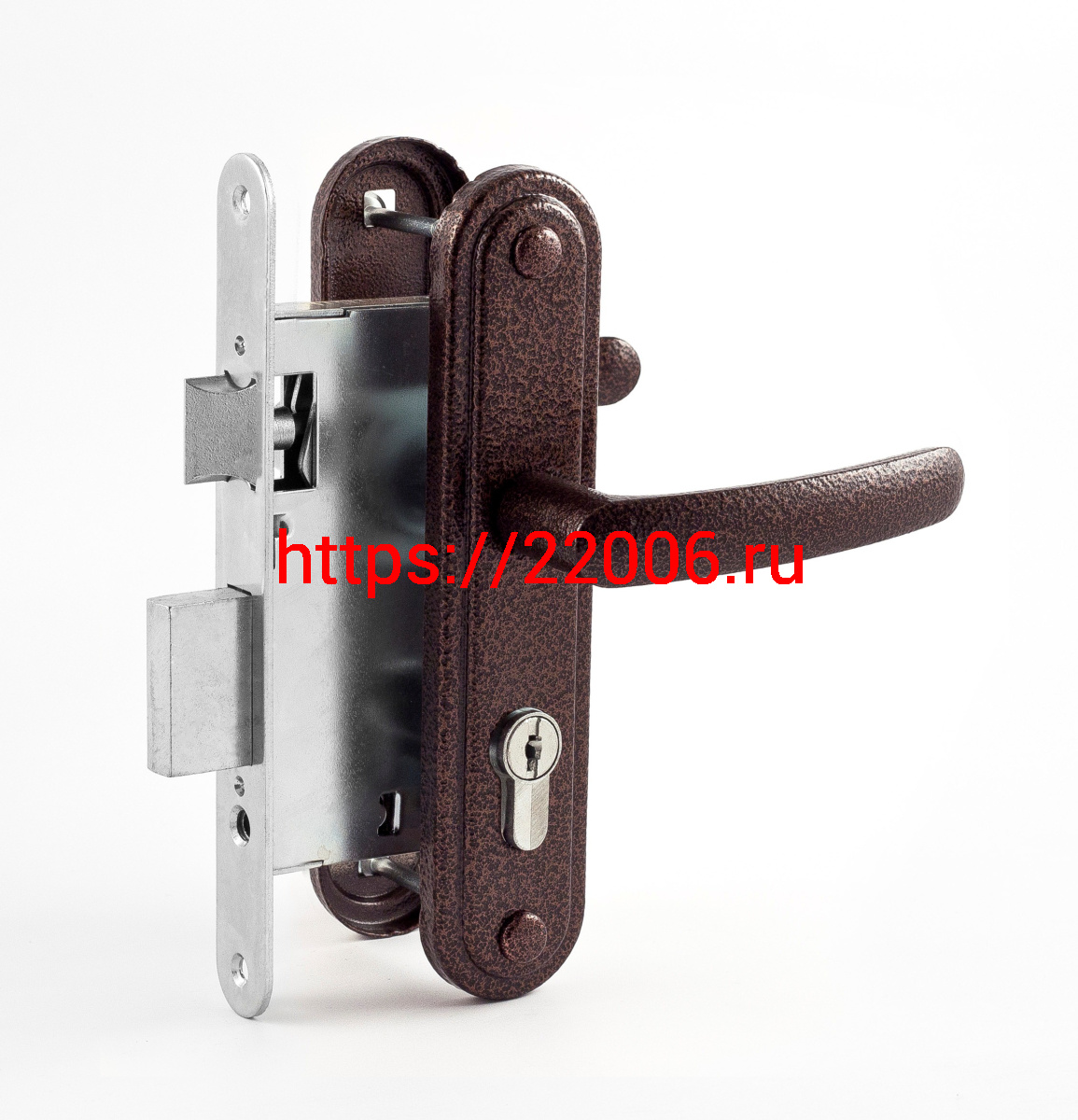 - Замок Omega (Омега) врезной цилиндровый с защёлкой в комплекте с ручкой ЗВ7.02 (медь), 4 кл. в Ирбите недорого