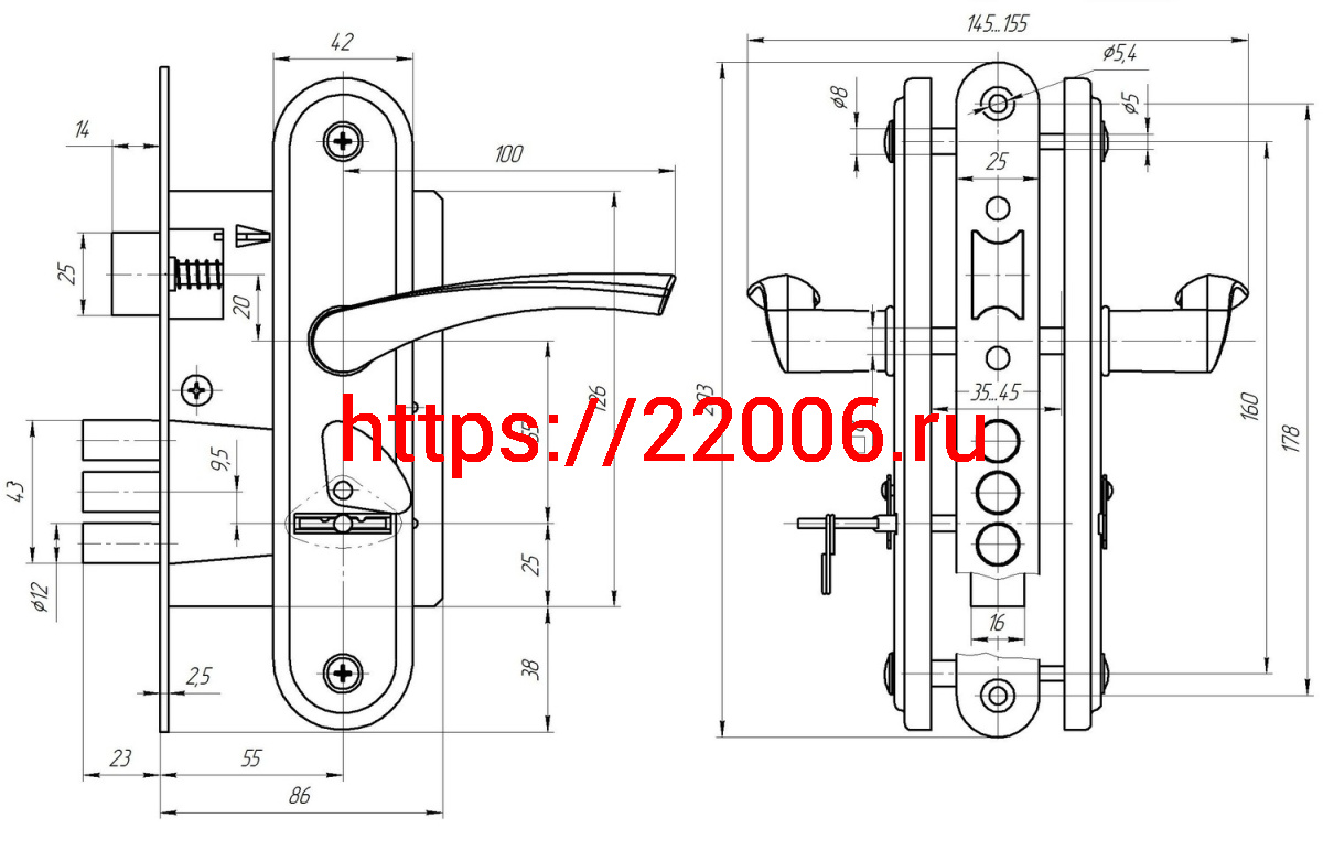- Врезные электромеханические замки
