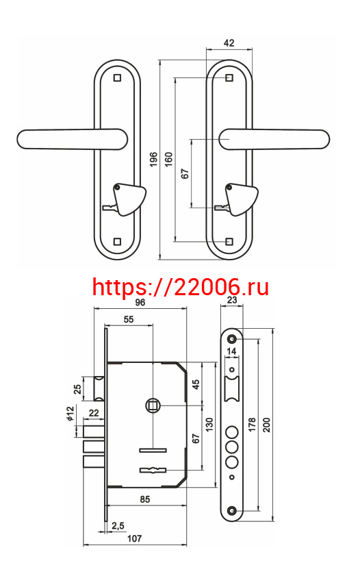 - Замок Omega (Омега) врезной сувальдный с защёлкой в комплекте с ручкой ЗВ9.1-02 (медь), 3 кл. в Ирбите недорого