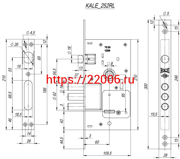 - Замок Kale kilit (Кале килит) врезной сувальдный с защёлкой 252/RL (тех. комплектация), 4 кл. (кл. 60 мм) в Ирбите недорого