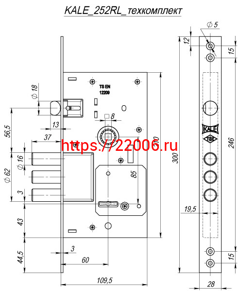 - Замок Kale kilit (Кале килит) врезной сувальдный с защёлкой 252/RL (тех. упаковка), 5 кл. в Ирбите недорого