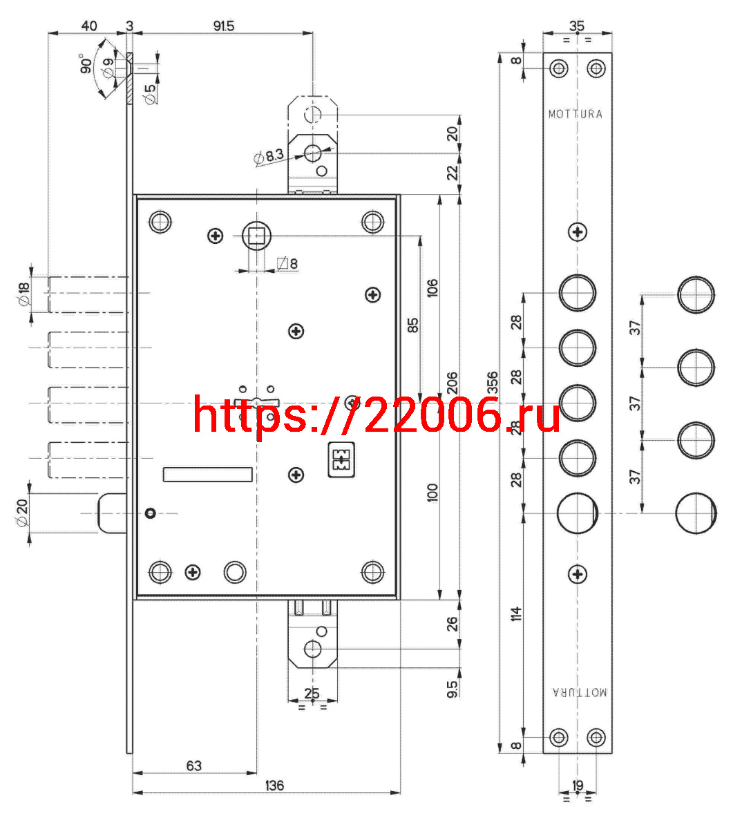 - Замок Mottura (Моттура) врезной сувальдный с защёлкой 52.771, ключ 60 мм, без накл. в Ирбите недорого