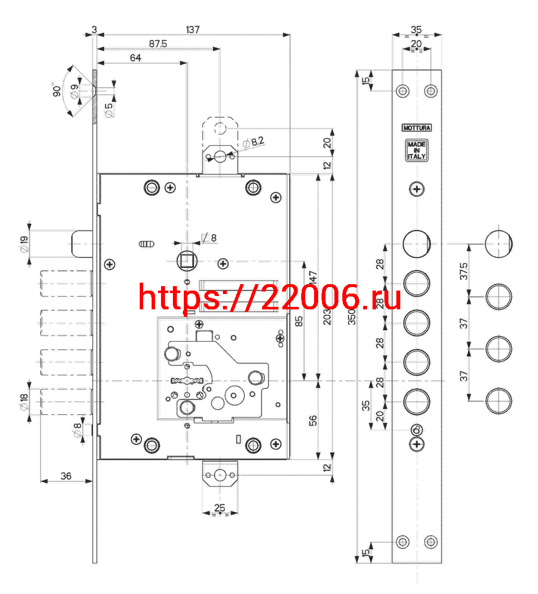 - Замок Mottura (Моттура) врезной сувальдный с защёлкой 52.J535M-D MyKey (правый), ключ 60 мм, без накл. в Ирбите недорого