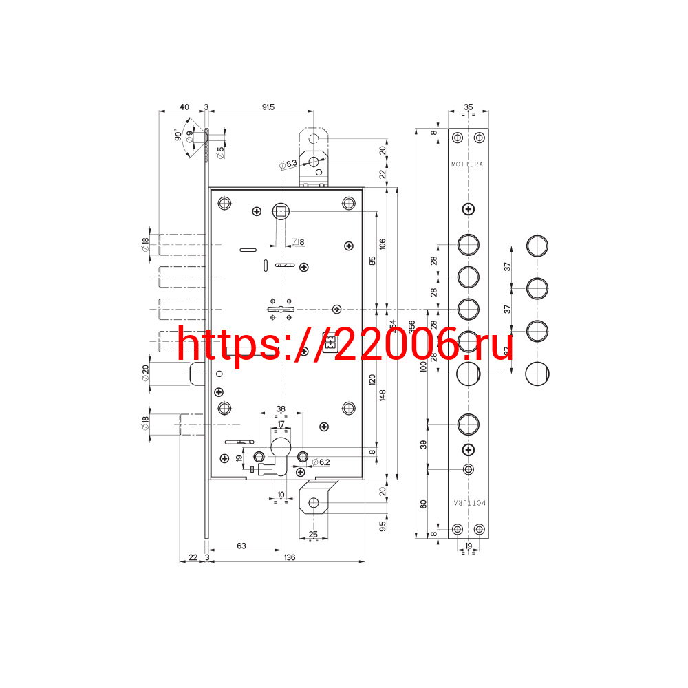 - Замок Mottura (Моттура) врезной двухсистемный 54.787, (без накладок) ключ 60 мм в Ирбите недорого