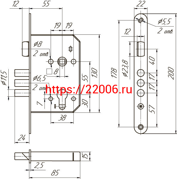 - Врезные электромеханические замки