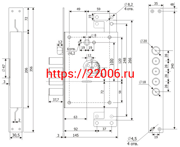 - Врезные электромеханические замки