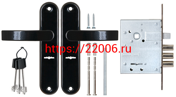 - Замок Sam (Сам) врезной сувальдный с защёлкой в комплекте с ручкой ЗВ9-6/13 (черный глянец), 3 кл. /77305/ в Ирбите недорого