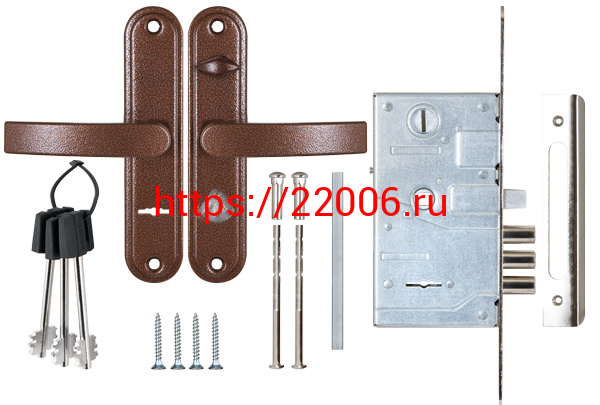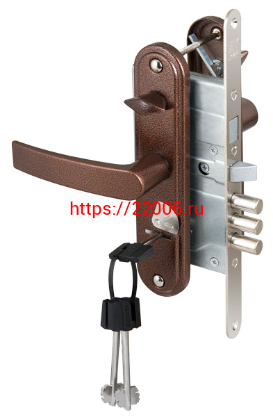 - Замок Sam (Сам) врезной сувальдный с защёлкой в компл с ручкой ЗВ9-8.3/13(КЛП5-85)прав (медн ант), 3 кл/88010/ в Ирбите недорого