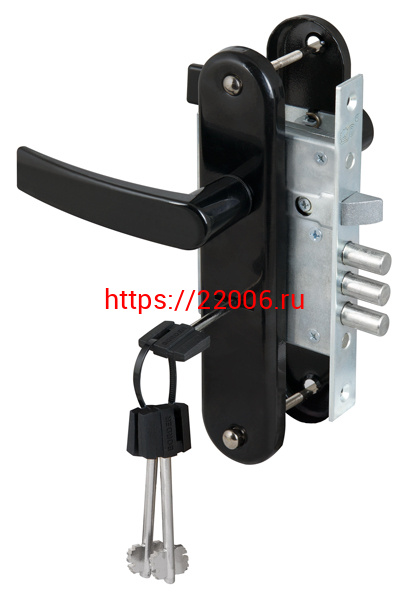 - Замок Sam (Сам) врезной сувальдный с защёлкой в комплекте с ручкой ЗВ9-8/13 (черный муар), 3 кл. /76704/ в Ирбите недорого