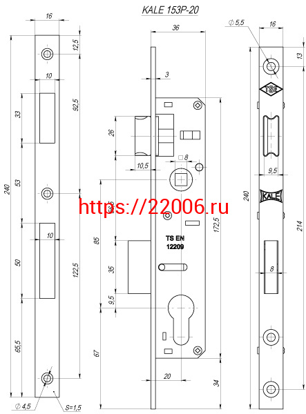 - Корпус Kale kilit (Кале килит) узкопрофильного замка с защёлкой 153/P (20 mm) w/b (хром) в Ирбите недорого