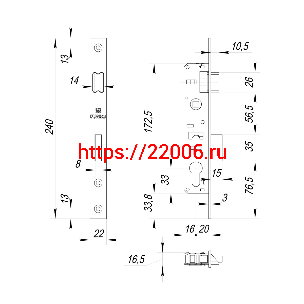 - Корпус Fuaro (Фуаро) узкопрофильного замка с защелкой PROF153-20/85 (153-20/85) CP хром в Ирбите недорого