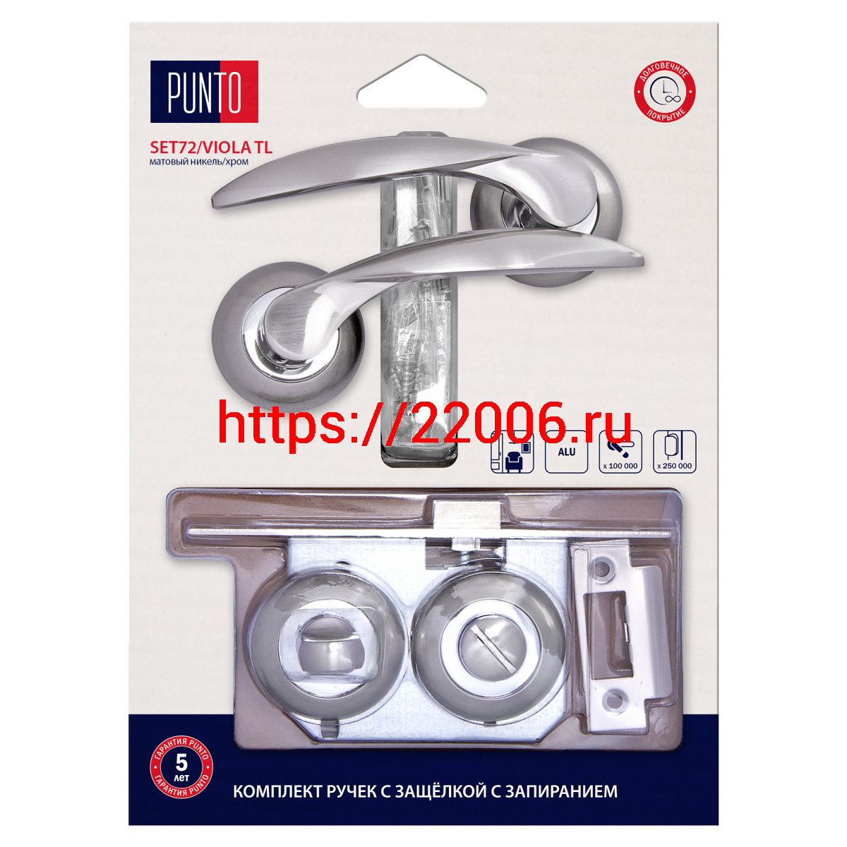 - Комплект ручек Punto (Пунто) с защелкой без запирания LM/A SET45R.TL54.VIOLA/HD SN/CP-3 матовый никель/хром в Ирбите недорого