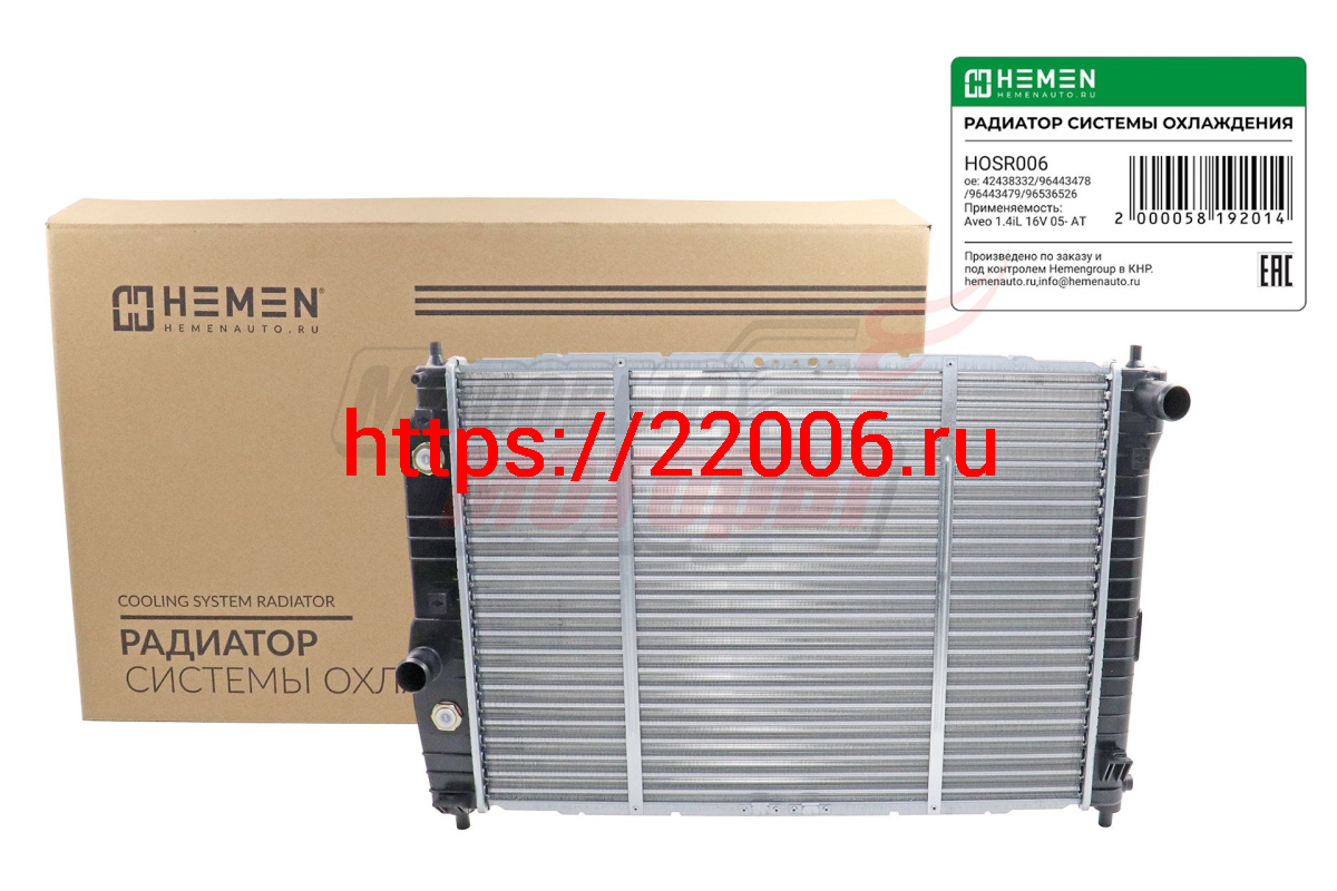 - Радиатор охлаждения двигателя Chevrolet Kalos, Aveo T200, T250, 1.2i/1.4i 16V 05- AT (HOSR006) в Ирбите недорого