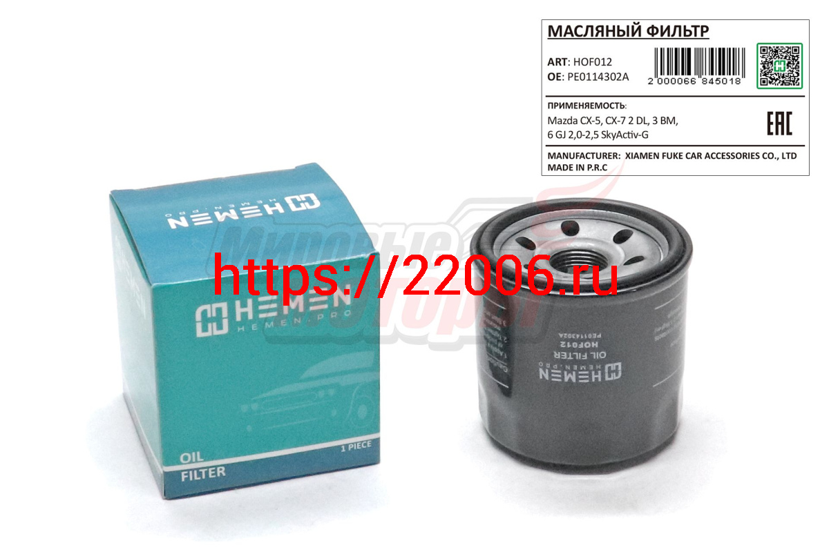 - Фильтр масляный Mazda CX-5, CX-7 2 DL, 3 BM, 6 GJ 2,0-2,5 SkyActiv-G (HOF012) в Ирбите недорого