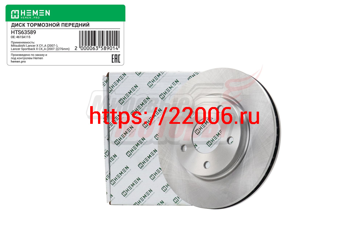 - Диск тормозной передний Mitsubishi Lancer X 08-, диам. 276 (HTS63589) в Ирбите недорого
