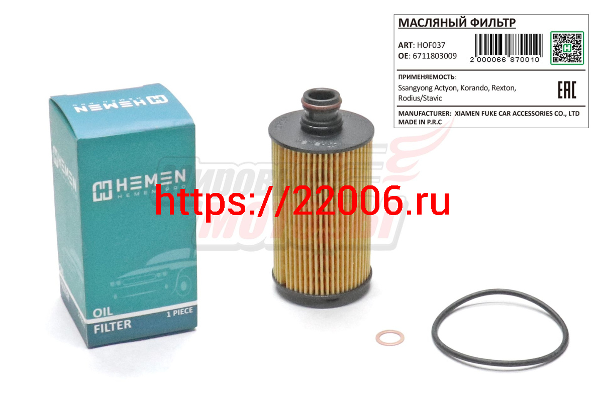 - Фильтр масляный Ssangyong Actyon,Korando,Rexton,Rodius/Stavic (HOF037) в Ирбите недорого