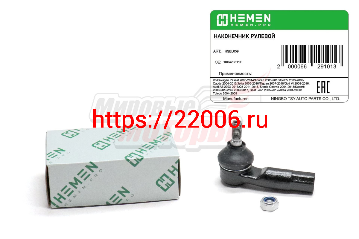 - Наконечник рулевой левый Volkswagen Touran 03-, Golf V 03-, Caddy 04-, Jetta 05-,Tiguan 07-(HSEL059) в Ирбите недорого