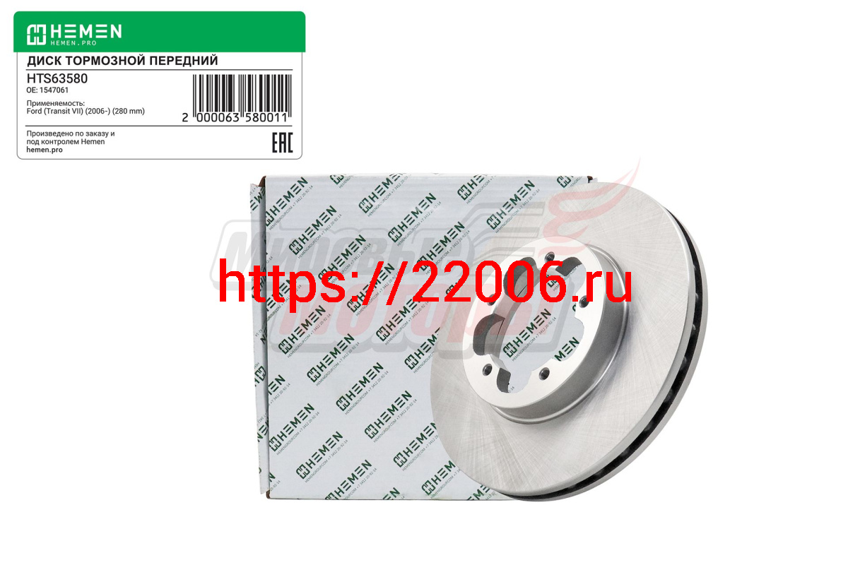 - Диск тормозной передний FORD Transit 06-, диам. 280 (HTS63580) в Ирбите недорого