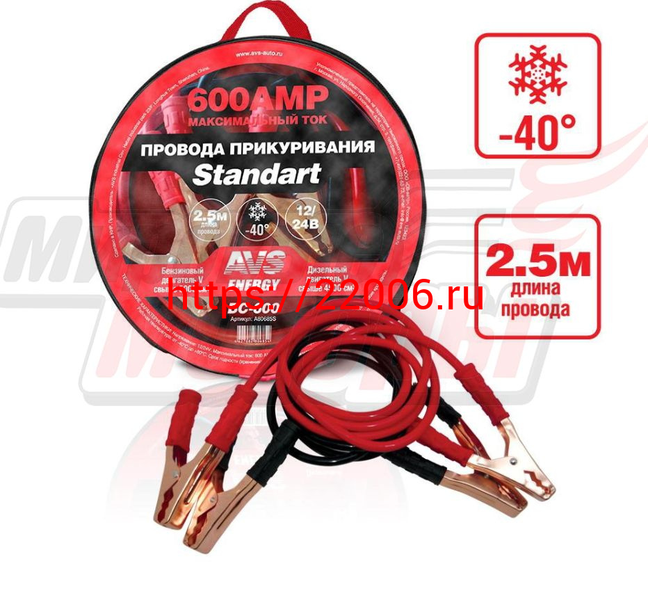 - Провода прикуривателя "AVS" Standart морозостойкие 600А/2,5м (ВС-600)(в сумке) в Ирбите недорого