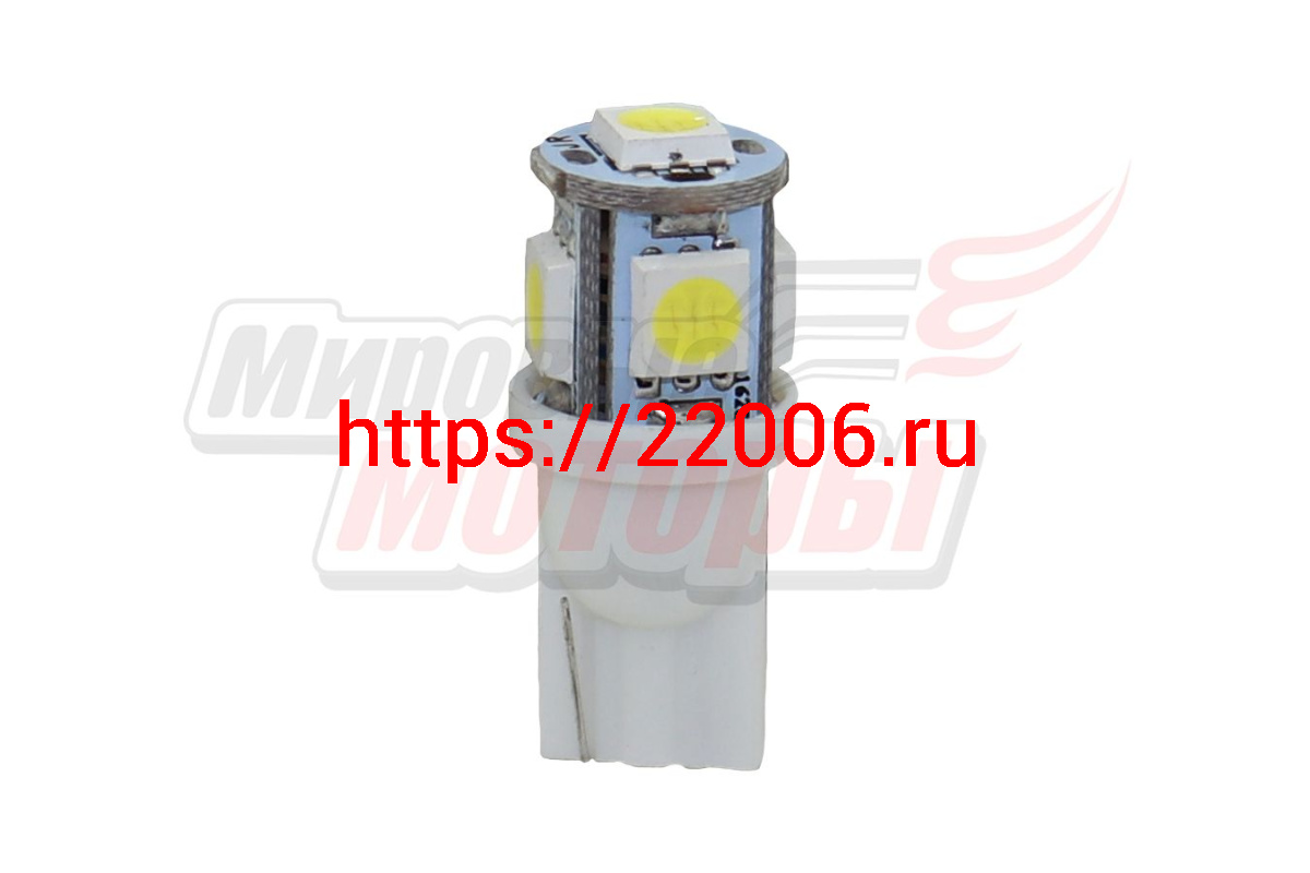 - Лампа 12 В T10, 5 светодиодов SMD, без цоколя, белая в Ирбите недорого